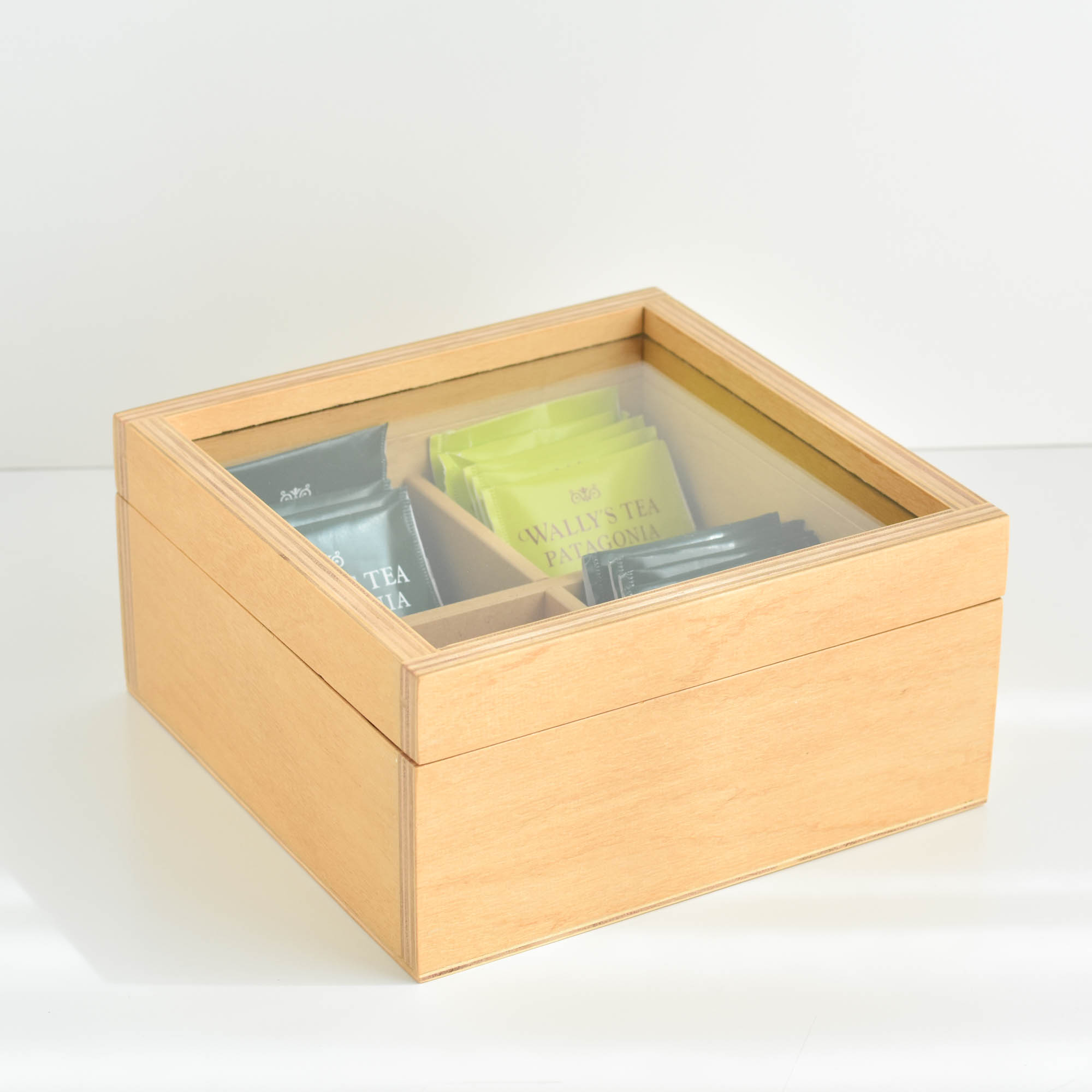 Caja de té MADERA GUATAMBU con tapa de vidrio x 4 unidades